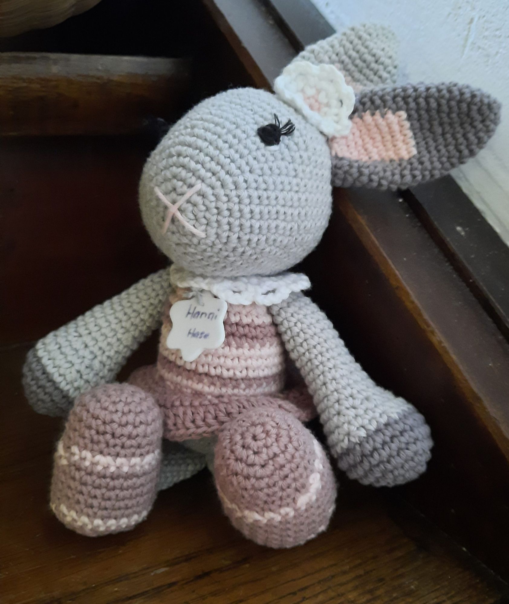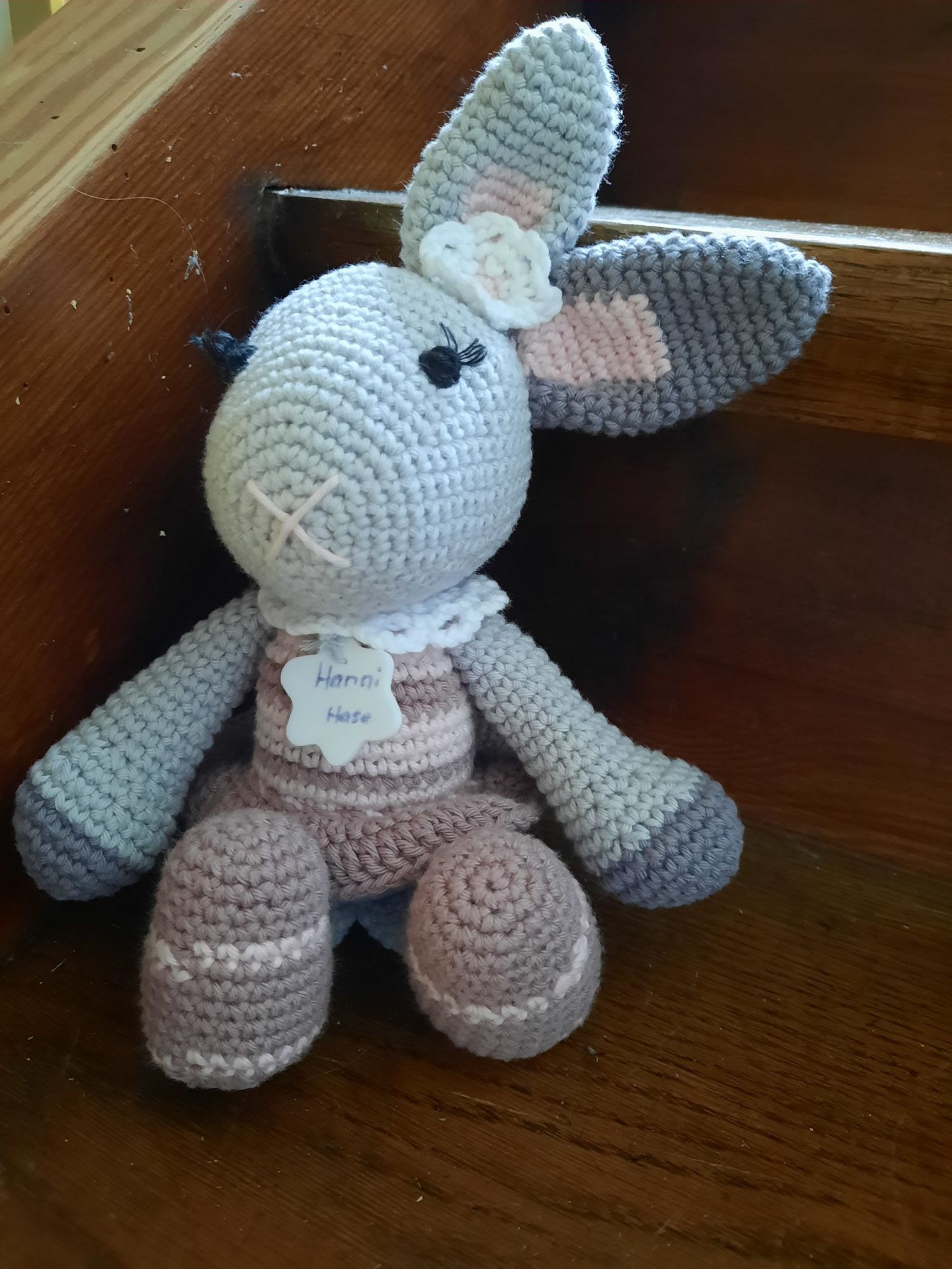 Gehäkelt aus festem speichelsicherem Baumwollgarn, fest und kindersicher verarbeitet, gefüllt mit natürlicher Kapokwatte.