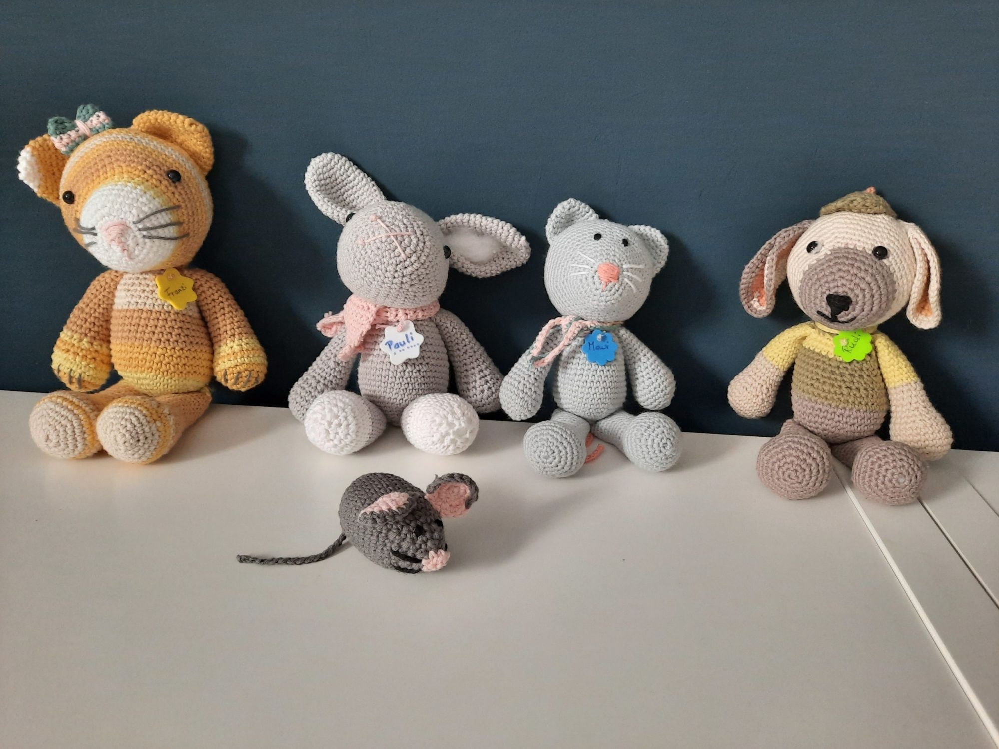 Aus reinem Baumwollgarn gehäkelt, gefüllt mit Synthetikwatte. Stabil verarbeitet. Waschbar.