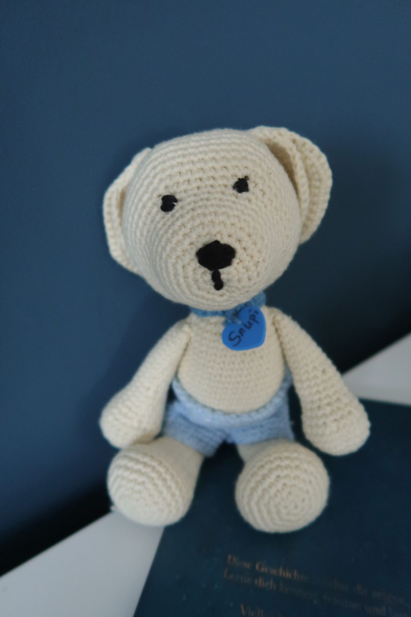 Gehäkelt aus festem speichelsicherem Baumwollgarn, fest und kindersicher verarbeitet, gefüllt mit natürlicher Kapokwatte.
